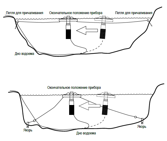 - При креплении ко дну лучше использовать якори, исходя из соотношения 5:1, то есть длина троса к глубине залегания якоря.