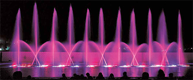 Водные картины с функцией изменения угла наклона в последнее время все чаще встречаются в цветодинамических фонтанах. Один привод угла наклона может поворачивать несколько типов форсунок. Современные технологии позволяют применять данный механизм не только в стационарных фонтанах, но и в плавающих. Комбинация поворотных форсунок и подсветки фонтана создает неповторимые уникальные водные эффекты.