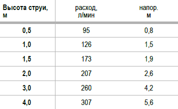 - min / max. высота струи 0,5 м / 4 м;